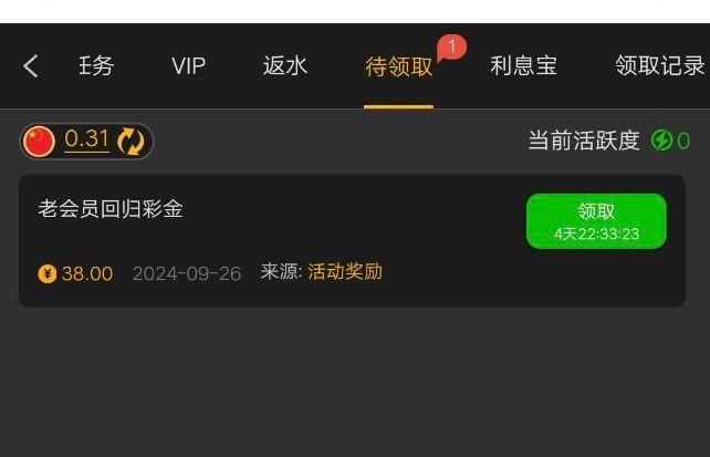 老用户登录领取回归彩金