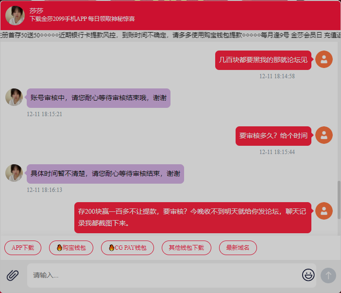 截图里有聊天记录和网址,大家注意这个黑网不要上当。