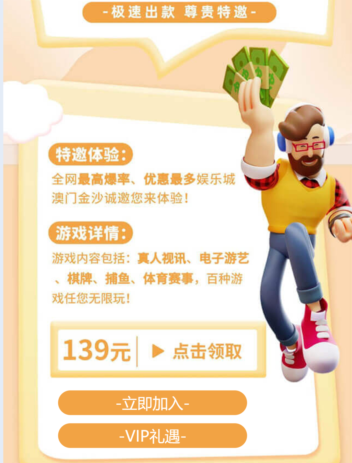 之前发过这个平台的送69和139两个项目 这次是新的送139链接 新老用户重新注册无需绑卡 按照要求自助发送短信 领过的没领过的都去试试 无游戏限制 五倍流水 最低提款100元